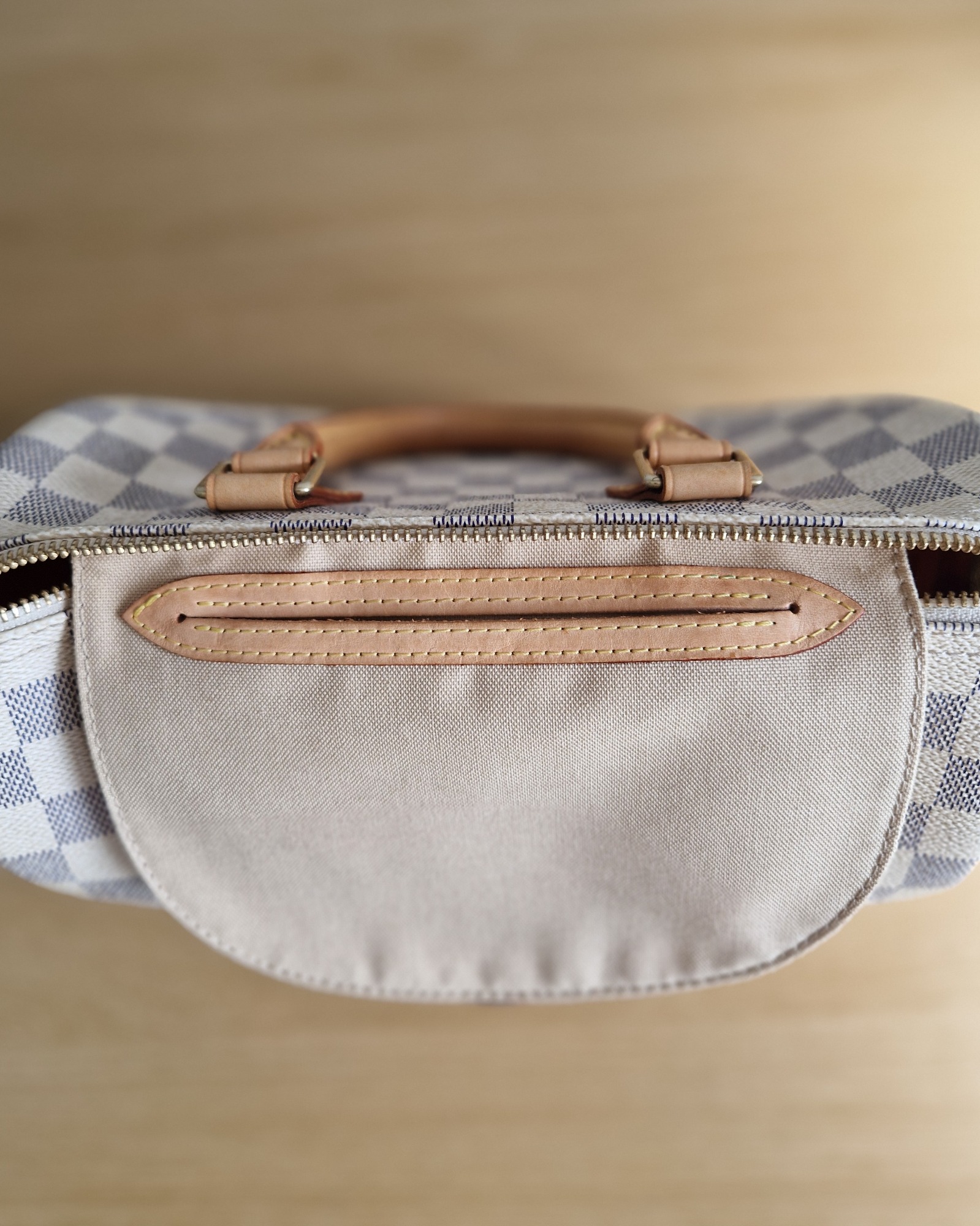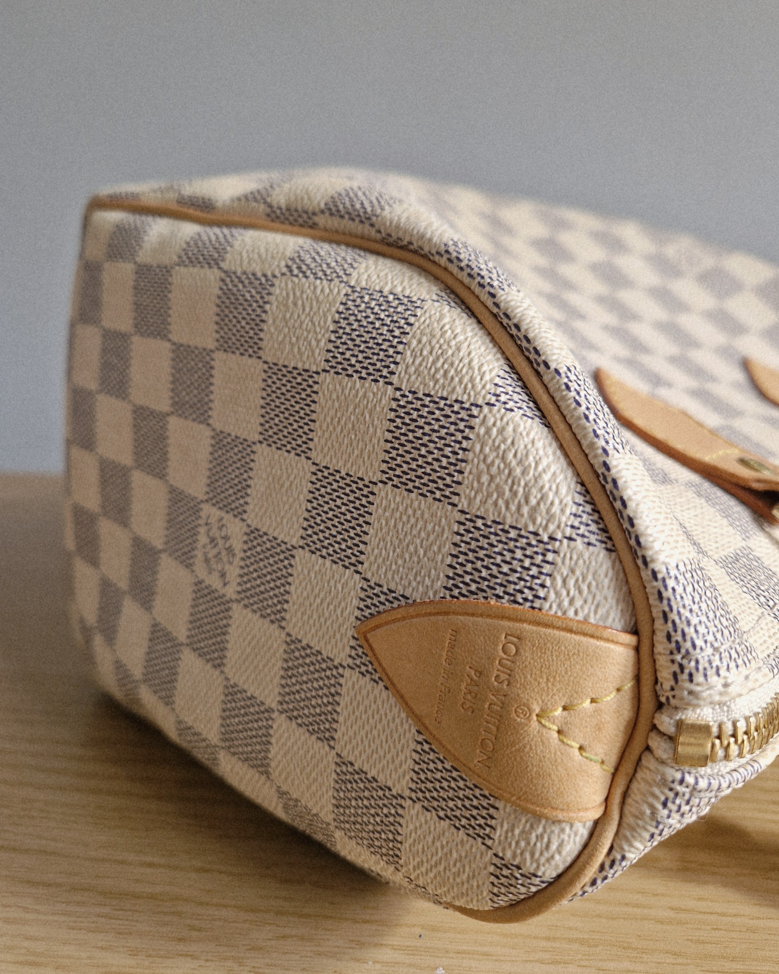 Presented in Damier Azur canvas, Holly carries a fresh, luminous feel — effortlessly suited to brighter days and lighter styling. Compact yet structured, she offers just enough space for daily essentials while maintaining her elegant form.